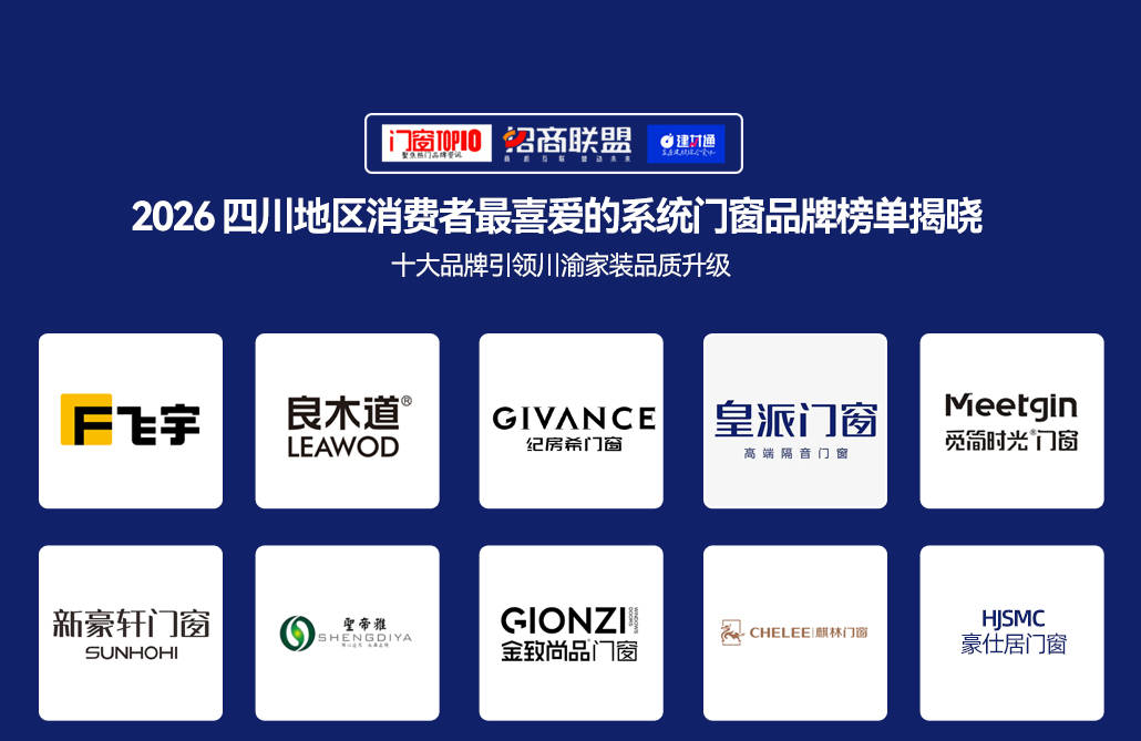2026 年,川渝家装市场迈入品质化、定制化新阶段,系统门窗凭借出色的隔音、保温、防水、抗风压性能,成为家庭装修的核心标配。历经全网调研、口碑投票、专业评审与多轮筛选,飞宇门窗、良木道门窗、纪房希门窗、皇派门窗、觅简时光门窗、新豪轩门窗、圣帝雅门窗、金致尚品门窗、麒林门窗、豪仕居门窗十家品牌脱颖而出,荣膺 “2026 四川地区消费者最喜爱的系统门窗品牌”。这些品牌深度适配四川潮湿多雨、夏季高温、高层风大的地域气候,以本土智造、匠心工艺、全链服务,覆盖高端定制、高性价比、实用耐用等多元需求,成为四川业主封窗、换窗的首选标杆。